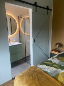 Er is ruimte voldoende om eventueel een extra logeerbed te plaatsen.